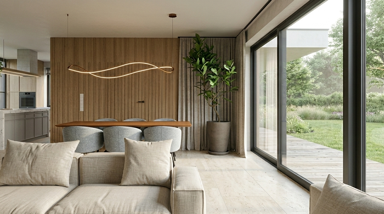 Ten dom to spójna opowieść o szacunku do materiału i miłości do dolnośląskiego krajobrazu, gdzie nowoczesny design spotyka się z ludowymi historiami regionu.